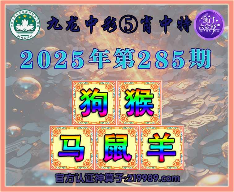 285期: 🥼『九龙中彩』 🥼⑤肖中特🥼【狗.猴..鼠.羊】开:马24