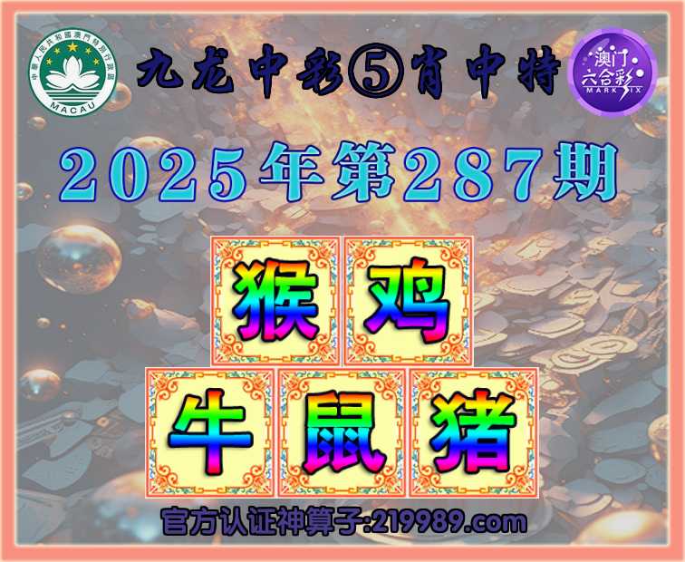 287期: 🥼『九龙中彩』 🥼⑤肖中特🥼【.鸡.牛.鼠.猪】开:猴34