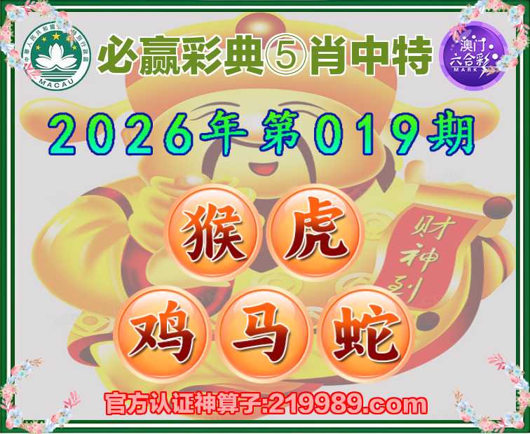 019期: 🍀『必赢彩典』 🍀⑤肖中特🍀【.虎.鸡.马.蛇】开:猴46