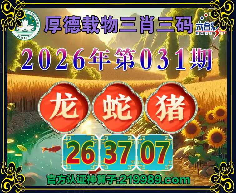 031期:【厚德载物】 🏆三肖三码🏆【蛇猪】【26.37.07】开:龙26
