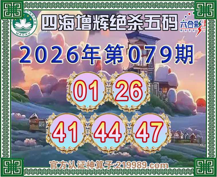 079期:【四海增辉】 👈绝杀五码👈【01.26.41.44.47】开:猴35