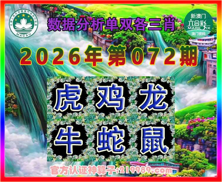 072期: 🍏《数据分析》 🍏单双各三肖🍏【虎..龙.牛.蛇.鼠】开:鸡46