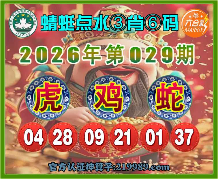 029期:〖蜻蜓点水〗 🥫③肖⑥码🥫【虎鸡】开:蛇01